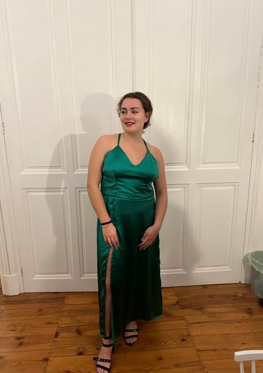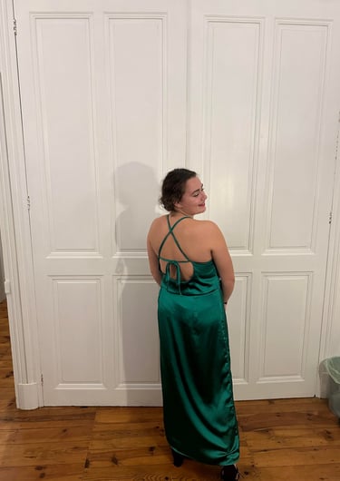 Je conçois des robes de cérémonie sur-mesure et confortables.
