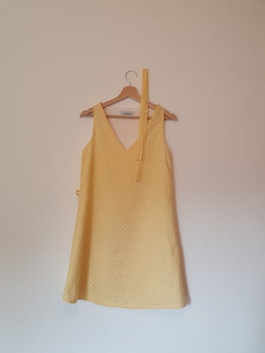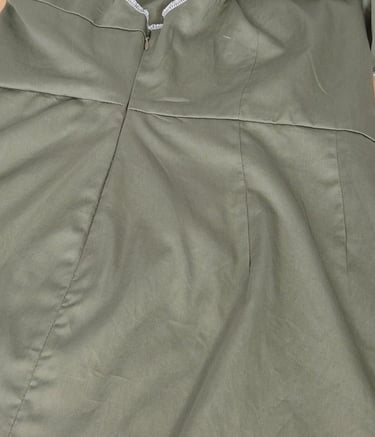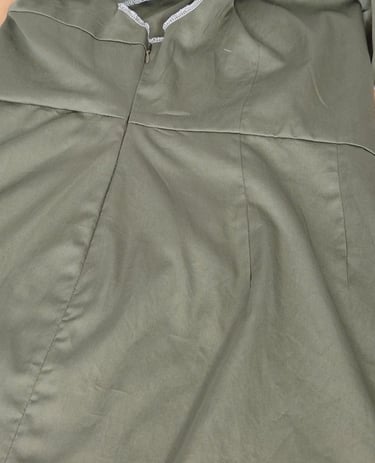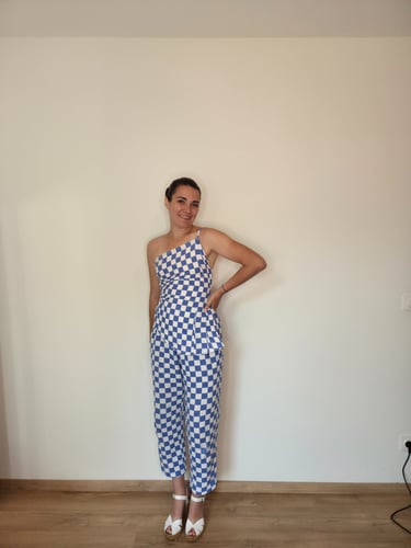 A partir d'une chemise homme en XL déniché par ma cliente, nous avons tenté l'ensemble : un débardeur et une jupe ont pu être cousu dans cette chemise en taille 38.