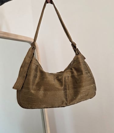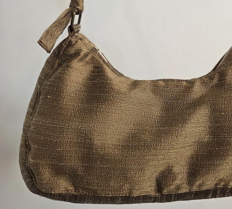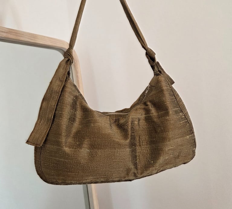 Ma cliente est venue me voir avec un tissu d'ameublement, elle aurait souhaité le transformé en sac à main. Nous avons réfléchi à plusieurs modèles et versions en fonction du tissu à notre disposition. Je lui ai proposé d'utiliser une chemise de mon stock de matière pour faire la doublure intérieure du sac. Le voici !