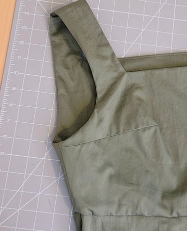 Après plusieurs essais en boutique de prêt-à-porter, ma cliente avait une idée assez précise de ce qu'elle souhaitait mais elle n'avait pas réussi à trouver la robe parfaite. Nous avons pu tester à l'atelier la luminosité que lui apportaient certains tissus et couleurs avant qu'elle fasse un choix. Grâce à la toile d'essayage, nous avons pu replacer les bretelles pour avoir le rendu le plus harmonieux possible.